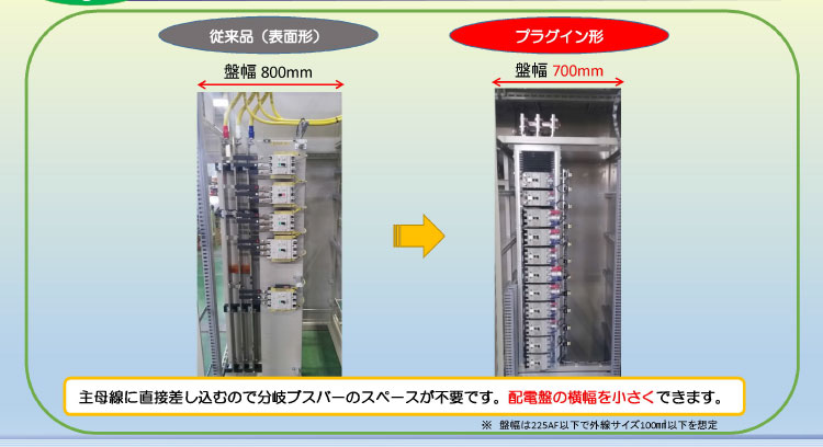 - 主母線に直接差し込むので分岐ブスバーのスペースが不要です。